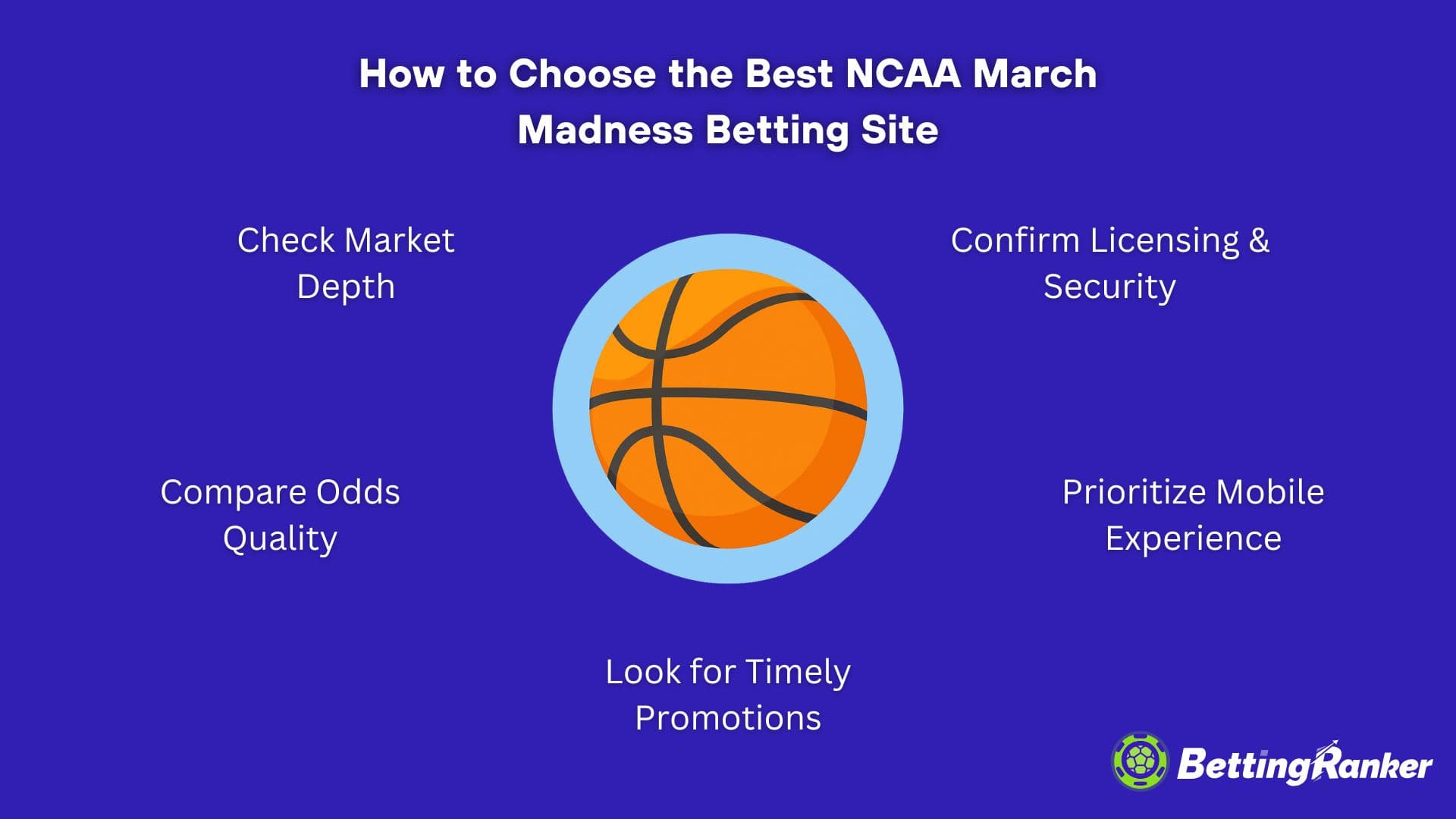 At BettingRanker, we’ve curated a trusted list of top-rated NCAA March Madness betting sites, all vetted for odds quality, bonus value, market variety, and user experience. Each platform we feature is licensed, secure, and tournament-ready.